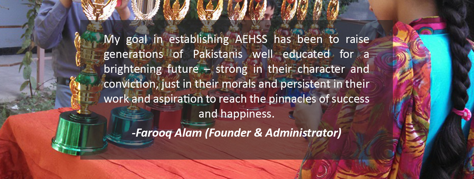 AFTAB ENGLISH HIGHER SECONDARY SCHOOL (AEHSS), a project of Aftab Collegiate, is a nationwide network of comprehensive schools which is based on strategic partnership with enthusiastic individuals, willing to invest and further the cause of education. AEHSS goal to become a reliable partner of the parents and society to cultivate young generation and provide value-based learning. AEHSS makes each student a well-groomed person with extreme motivation, creative ideas and supreme talents so that they can become self-directed life-long learners. Students at the Knowledge schools are promised not only effective learning in all academic’s subjects but also personality grooming based on our social code. In short span of time, AEHSS has developed a sizable network of operative schools throughout Pakistan.